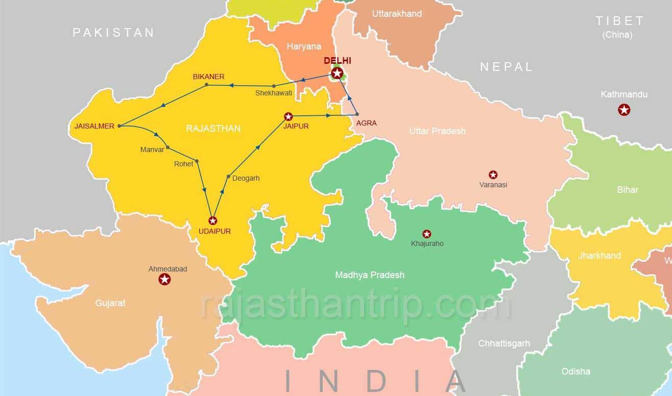 Visit the architectural marvels of Old and New Delhi before travelling to the Shekhawati region of Rajasthan, where you'll visit the village of Mandawa. Drive to Khimsar to see the Khimsar Fort and the Rat Temple at Deshnok. Visit the desert cities of Jaisalmer and Bikaner for sightseeing. Get to the tribal village called Bishnoi. Reach Udaipur, the 'City of Lakes' for another exciting sightseeing tour. Soak up the historical charm of Jaipur, the capital city of Rajasthan. Enjoy a stroll through the local bazaars in the city. Travel to the city of Agra to see the Taj Mahal, an architectural wonder and a monument of love, and the massive Agra Fort.