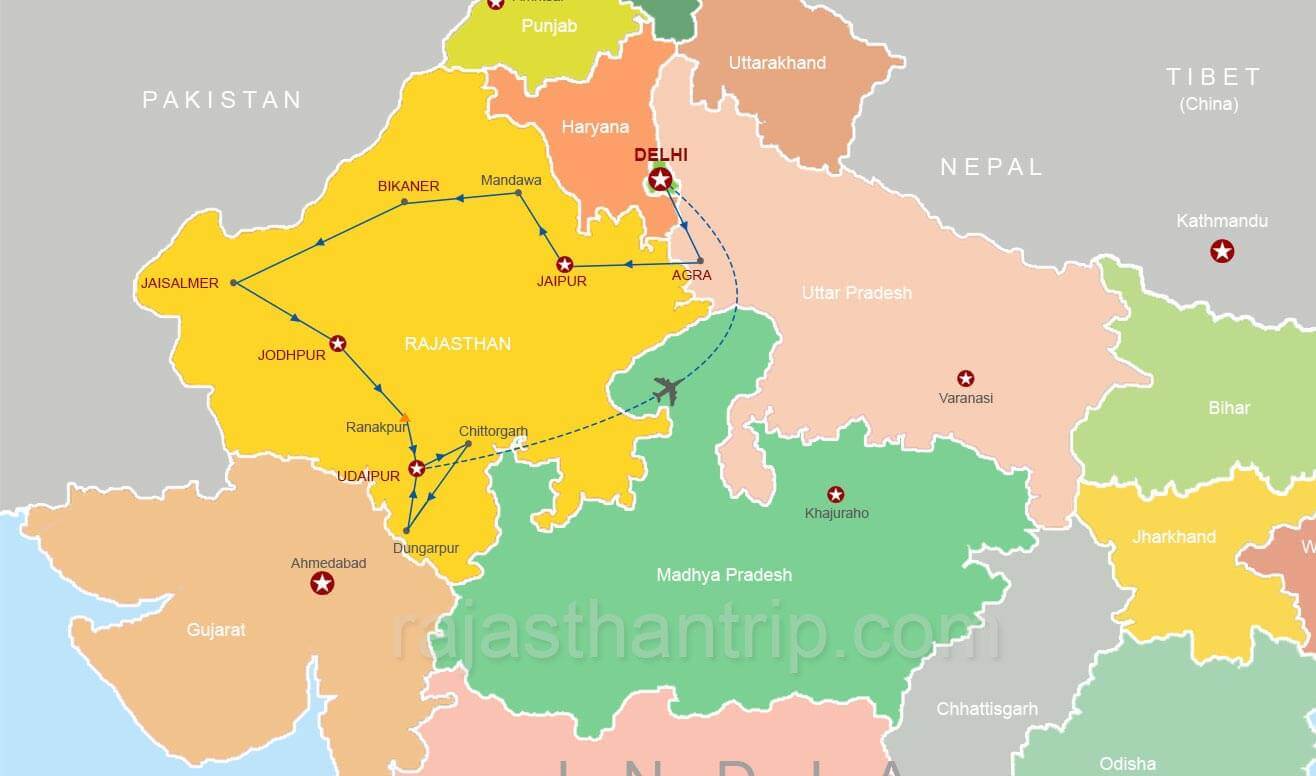Delight yourself with a guided sightseeing tour of Old and New Delhi. Travel to Agra – the 'City of the Taj' – to visit the Taj Mahal and many other popular attractions of the Mughal period. Leave for Jaipur, popularly regarded as the 'Pink City' to view the City Palace, Ambar Fort and Hawa Mahal. Spend a day in the village of Mandawa before travelling to Bikaner. After exploring Bikaner, get to Jaisalmer, the 'Golden City' to enjoy seeing more attractions and the great Thar Desert. Next on the list is Jodhpur where you'll visit the Mehrangarh Fort, the Umaid Bhawan Palace and the Jaswant Thada. Enjoy a sightseeing tour of the romantic city of Udaipur, also known as the 'City of Lakes'. After excursion trips to Chittaurgarh and Dungarpur, travel back to Delhi for your flight back home.